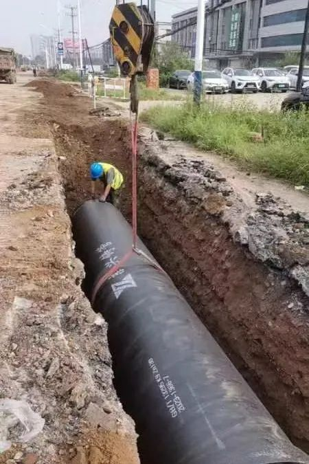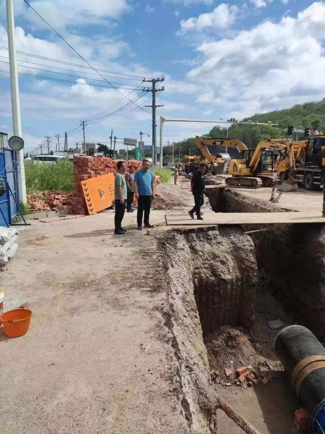 經過十天的連續施工和八個晝夜不休的奮戰作業,工程公司如期完成了全線2500米球墨鑄鐵管的鋪設工作。隨后的三天時間里,又緊鑼密鼓地進行了多個連接點斷水作業,有序推進溝槽級配碎石回填,分層夯實及路面恢復工作,確保了道路通車。