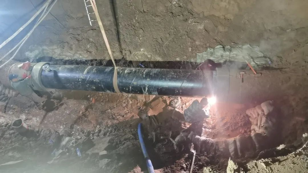 通過對原漏點管道的切割、拆除、換管、焊接、打口等一系列搶修工序,經過一天兩夜的不懈努力,于8月17日凌晨4點完成DN800管道修復工作,搶修歷時30小時。