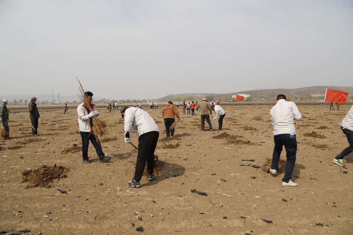 參與人員帶著鐵鍬、手套、水桶早上7點從集團出發,8點30分到達現場。個個熱情高漲、干勁沖天,大家相互配合,默契十足,2人一組,挖坑放苗、扶植樹苗、揮鍬培土、踩實壓緊、澆水圍土,整個勞動場面繁忙而有序。