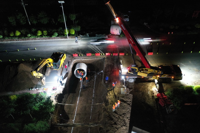 8月22日晚,LXB供水錦州市配套供水工程杏山綜合加壓泵站到凈水廠雙線輸水管線進行了穿越中信路施工。晚八點,兩臺鉤機破路開挖,下埋直徑兩米八的套管保護輸水管線的安全使用以及延長使用壽命。工程施工進行了整整一夜,水務工人迎接著第一道朝陽的升起完成了此項任務,確保了杏山到凈水廠輸水管線的正常施工。