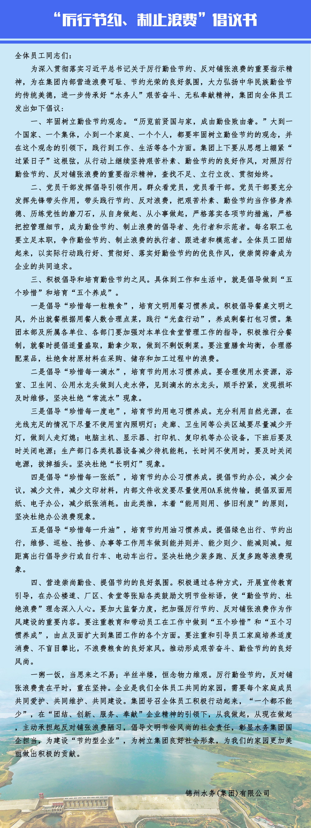 “厲行節約、制止浪費”倡議書