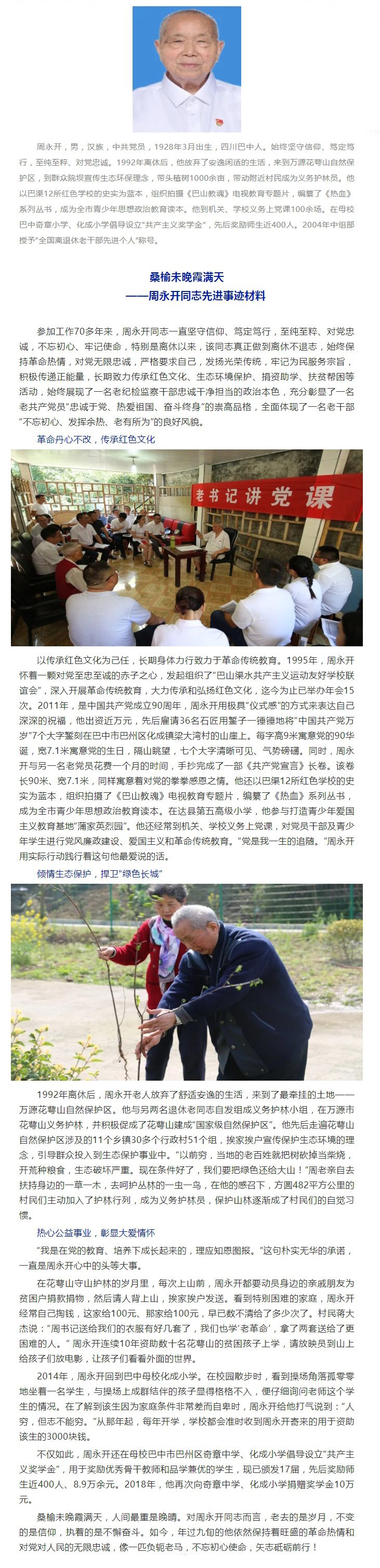 【全國優(yōu)秀共產(chǎn)黨員先進(jìn)事跡一】桑榆未晚霞滿天——周永開同志先進(jìn)事跡