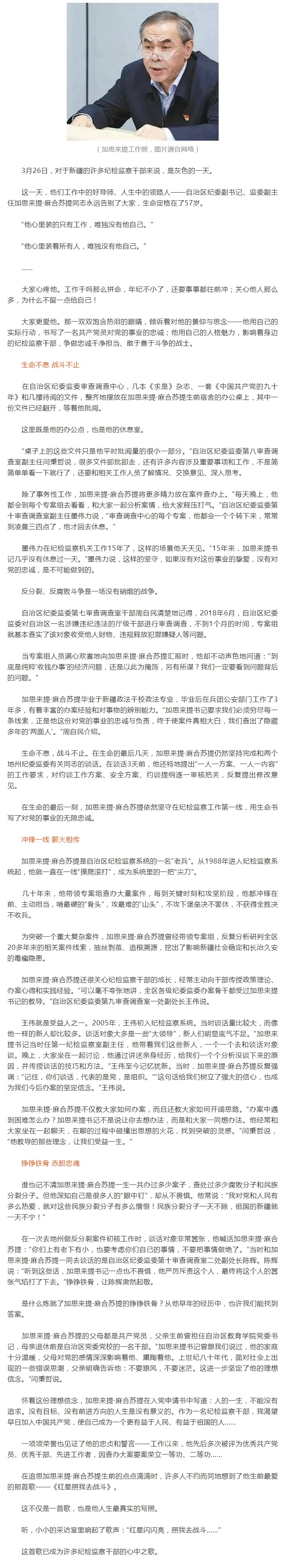 【全國優秀共產黨員先進事跡七】用生命書寫忠誠——追記自治區紀委副書記、監委副主任加思來提·麻合蘇提同志