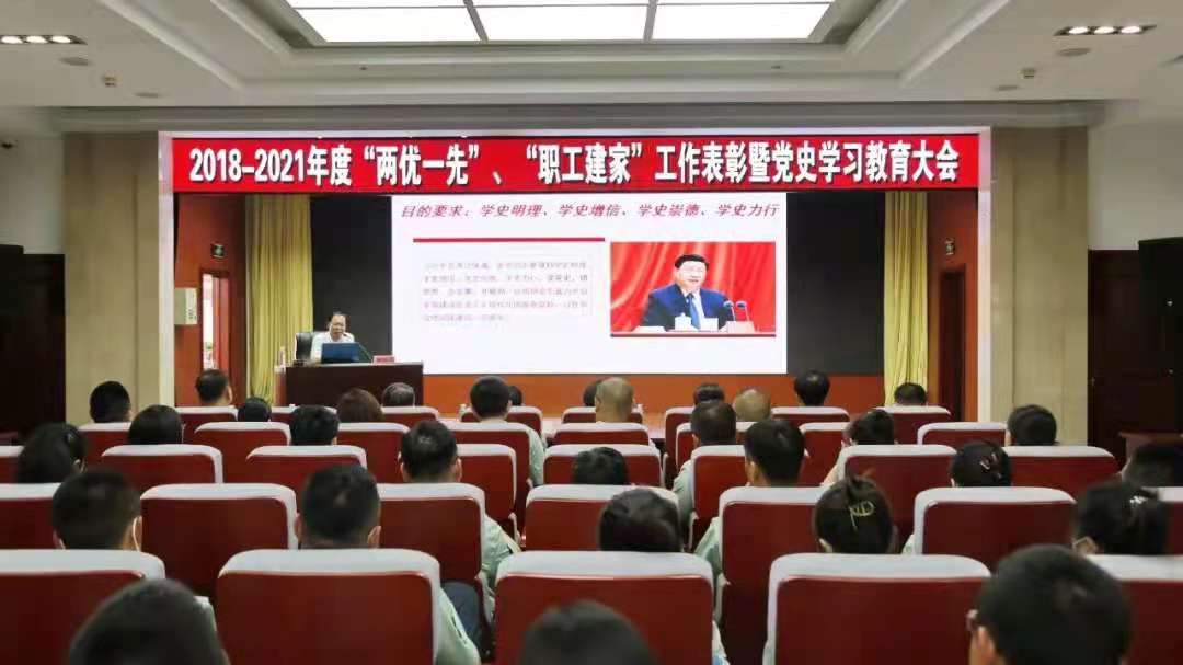 紅色黨史、百年傳承,在黨的百年華誕即將到來之際,6月30日下午13:30,錦州水務集團2018-2021年度“兩優一先”、“職工建家”工作表彰典禮暨黨史學習教育大會在職工會館四樓召開,集團領導班子成員、全體中層干部、優秀黨員代表、職工代表參加會議。會議由集團黨委副書記、工會主席孟凡東主持。