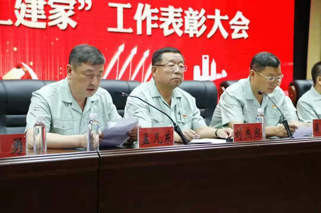 在莊嚴的國歌聲中,會議拉開帷幕。集團黨委副書記、副總經理吳世慶首先宣讀了《關于表彰2018—2021年度“兩優一先”先進集體和先進個人的決定》《關于表彰2018—2021年度工會工作先進集體和先進個人的決定》。隨后,領導班子成員為先進黨支部、優秀共產黨員、模范職工小家、工會積極分子等8個獎項的獲獎集體和個人頒發了牌匾、證書,表彰他們在集團黨建工作、工會工作中發揮的模范作用和取得的突出成績。
