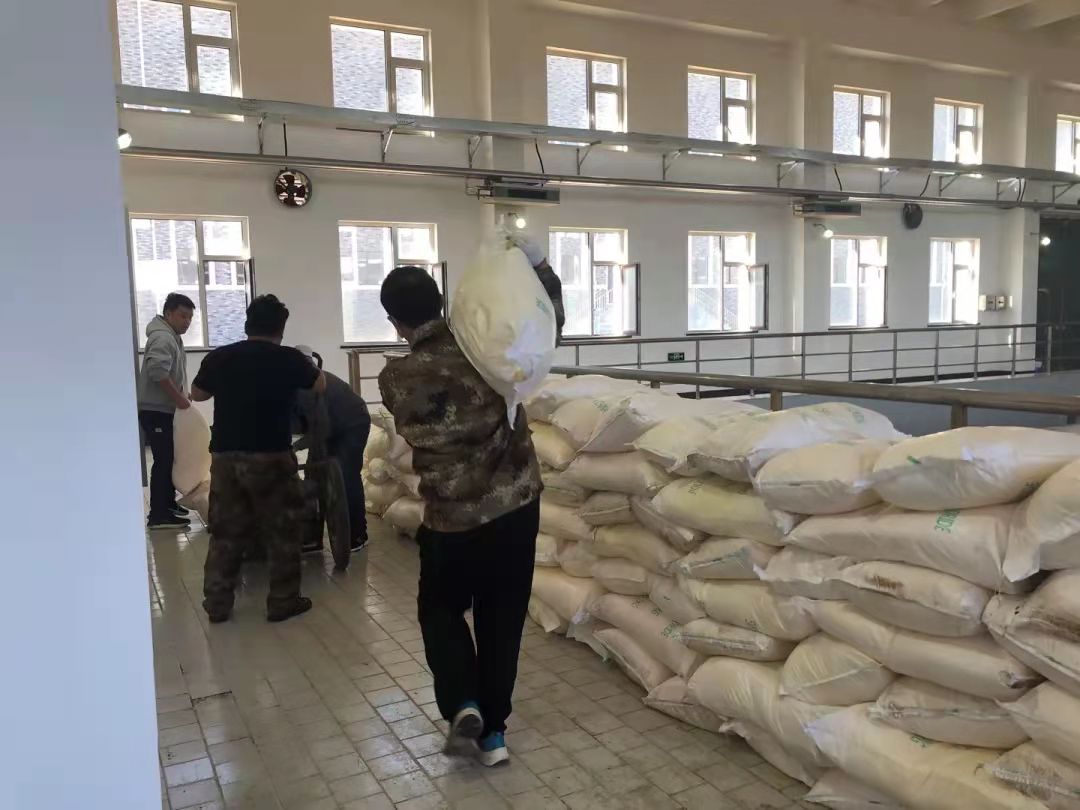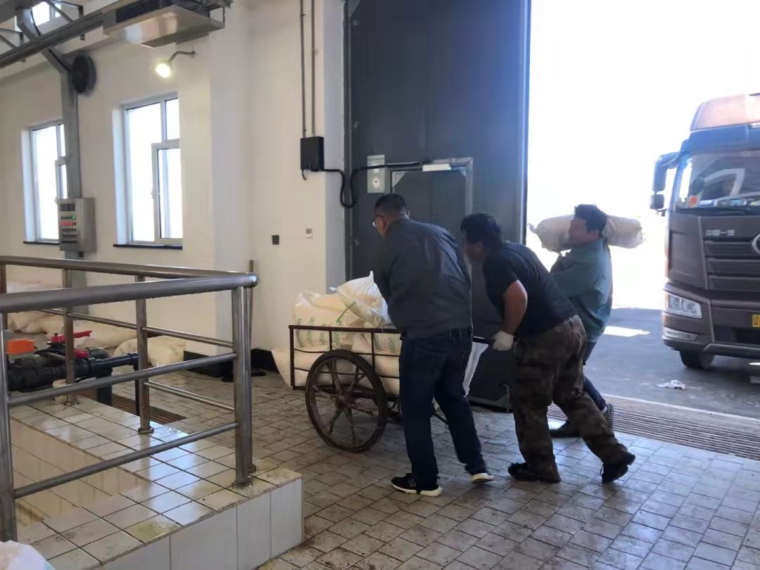 看著大貨里多半斗藥我忍不住問了一句:“這得多少啊!”“今天13噸藥,也就五百多袋吧”“明天還有16噸。”他們一前一后氣喘吁吁的回答著,小伙子們還是以前綜合維修班的班員,不過這次卸藥必須用人力一袋一袋扛,開始還能像流水線一樣,一半藥下去之后,大家的速度明顯都慢了下來,扛也變成了抱,“咱得加油啊,一會還得加藥呢,我推車去,一回10袋沒問題。”說著一個(gè)人率先推起了小推車,小車左側(cè)的轱轆已經(jīng)完全癟了,但為了能加快速度,他們把小車?yán)锏乃幎训睦细撸瑑扇艘还淖鳉馔七^了大門坎才算完了一趟。就這樣扛藥和推車輪流作業(yè),快中午才搬完了所有藥品,他們漲紅的臉上、脖子上都是豆大的汗珠,配上被粉末染黃的頭發(fā),看著好笑又心疼。