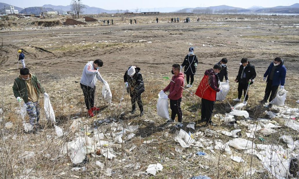 在班吉塔大集,黨員干部、職工們一齊撿拾地上的垃圾袋、飯盒及枯枝落葉等垃圾雜物,并為百姓宣講《錦凌水庫飲用水水源保護條例》,加強水源地環境保護宣傳、知識普及和法律條例解讀。