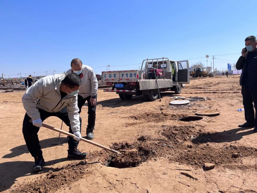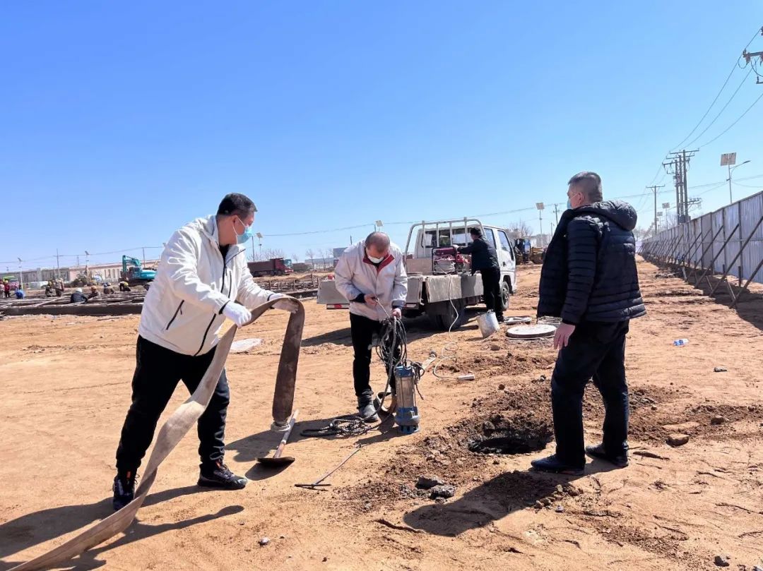 接到任務指令后,龍棲灣公司黨支部書記李迪飛高度重視,迅速集結施工小組,并將所需使用的機械設備運至現場。黨員、維修班班長馮志剛沖鋒在前,在不影響現場其他施工方交叉施工的情況下,按照現場實際情況,進行現場勘查和管線檢測。