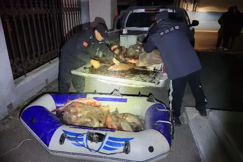 2022年11月13日晚23時,凌海市公安局板石溝派出所、錦凌水庫經(jīng)營管理公司在對錦凌水庫進(jìn)行聯(lián)合巡查時發(fā)現(xiàn),位于凌海市板石溝鄉(xiāng)大劉屯村的錦凌水庫水域內(nèi)有掛網(wǎng),懷疑有人非法進(jìn)行捕魚。巡庫人員采用技術(shù)手段,對疑似偷盜魚的重點(diǎn)人員進(jìn)行跟蹤,確定行動軌跡后現(xiàn)場蹲點(diǎn)守侯,在確實掌握嫌疑人的偷盜魚行為后開展了聯(lián)合行動,于2022年11月14日凌晨4時,現(xiàn)場抓獲偷盜魚者2名,繳獲被盜鰱魚496斤、橡膠船1艘、漁網(wǎng)2片。
