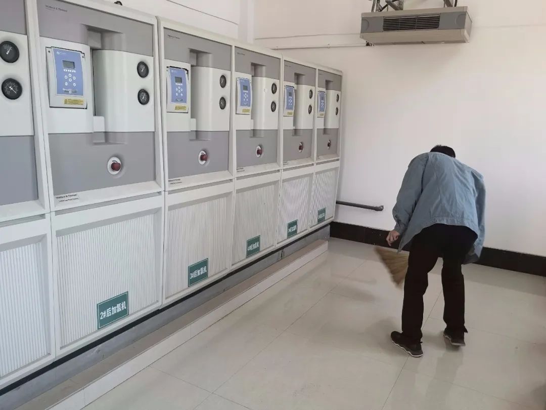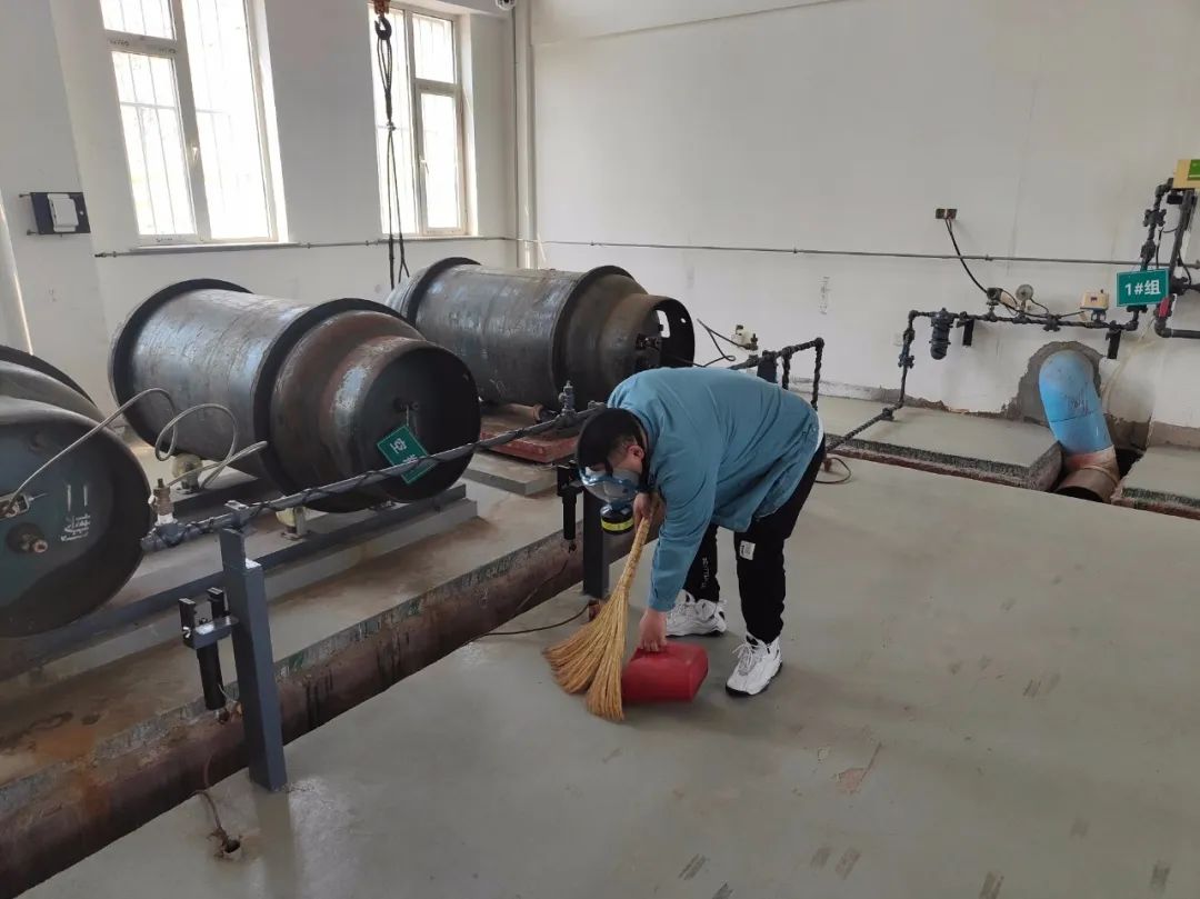 加氯設備要細心,水漬灰塵不留痕。加氯設備的清潔清理更注重謹慎細心,清潔期間全員嚴格遵守危險化學品管理條例操作,對加氯機部件、蒸發器部件、漏氯報警器及氯回收裝置進行清潔保養,并打掃氯瓶表面、加氯管路,將設備工具和專用防護服統一擺放整齊。地面清潔則采取拖布加刮擦的方式,保證不留水漬不留痕跡。