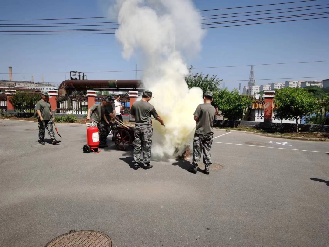 本次進行的是滅火器消防演練,隨著現場濃煙冒起,八一班長李朝林迅速拿起滅火器,觀察滅火器壓力表指針,是否處在合格位置,檢驗合格后,立即采取“一提、二拔、三握、四壓”的操作方式,對準火源根部進行滅火。整個演練過程緊張、有序,安全,達到了演練和教學目的,增強了職工的安全意識,提高了遇到突發火情的應急處理能力。