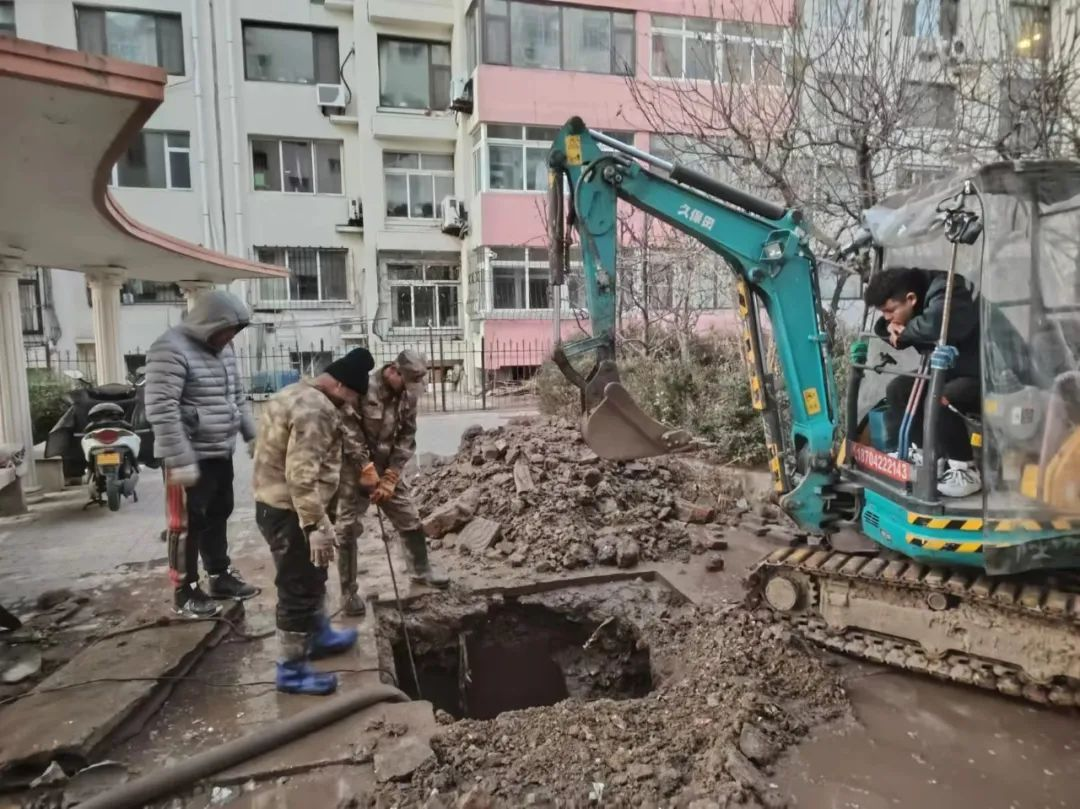 2025年1月1日凌晨0:00,伴隨著古塔公園跨年鐘聲的響起,西街里9號樓下的爆管搶修排查工作仍在緊張進(jìn)行中。