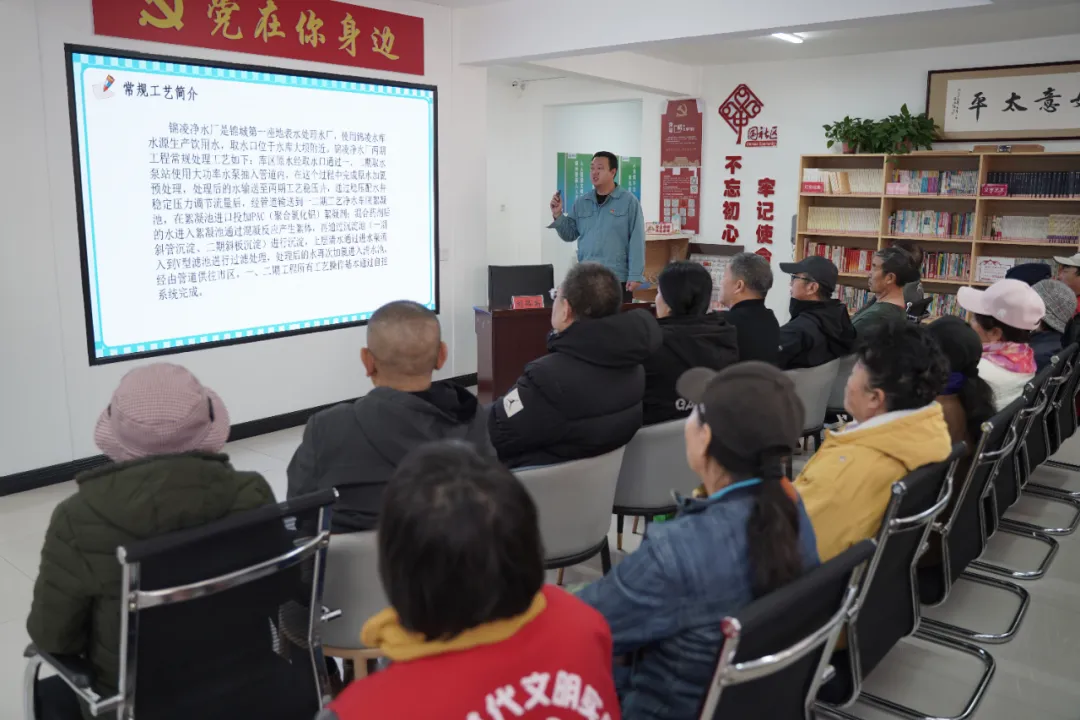 緊接著,錦凌凈水廠副廠長劉路禹以“一滴水的凈化之旅”為主題,系統(tǒng)講解原水取水到出水的核心凈水工藝。結合錦州水源地特點,他特別強調:“水質安全容不得半點馬虎,我們通過24小時智能監(jiān)測與近百項指標嚴控,確保每一滴水都符合國家標準。”嚴謹?shù)目破罩v解既彰顯科技力量,又貼近生活實際,現(xiàn)場居民紛紛感嘆:“原來‘擰開水龍頭’的背后,凝聚著如此多的匠心與堅守!”